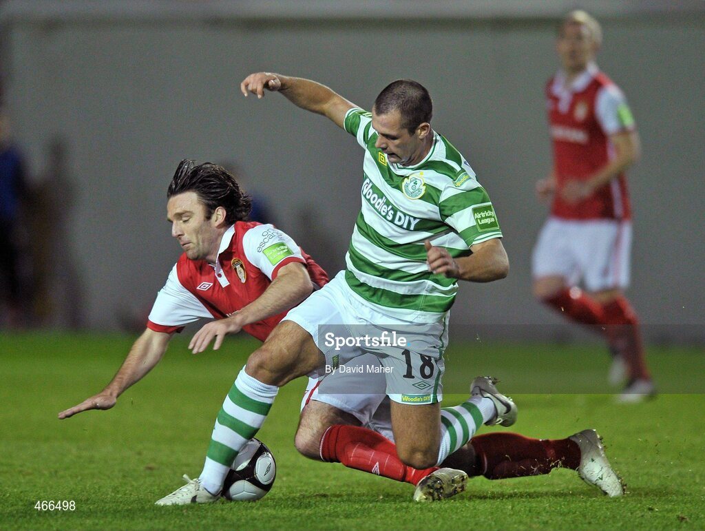 19 October 2010; Stuart Byrne, St Patrick's Athletic, in action against Chris Turner, Shamrock Rovers. FAI Ford Cup Semi-Final Replay, St Patrick's Athletic v Shamrock Rovers, Richmond Park, Inchicore, Dublin. Picture credit: David Maher / SPORTSFILE