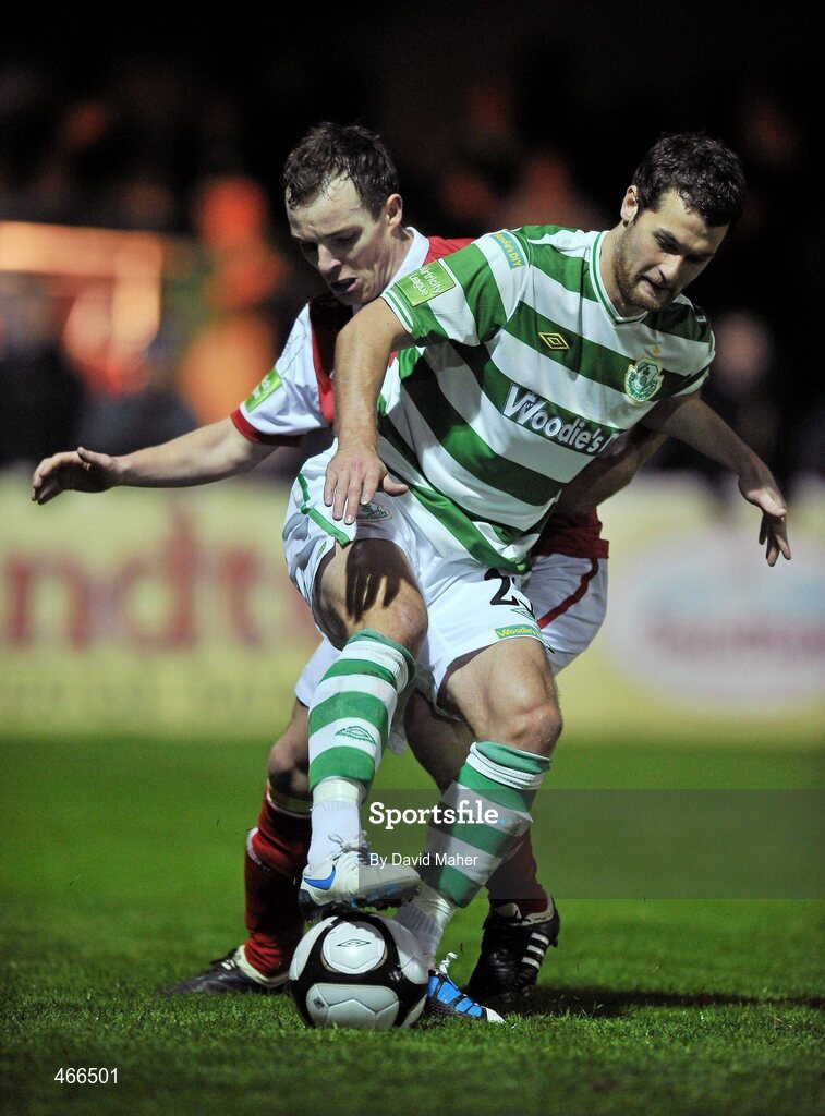 19 October 2010; Thomas Stewart, Shamrock Rovers, in action against Derek Pender, St Patrick's Athletic. FAI Ford Cup Semi-Final Replay, St Patrick's Athletic v Shamrock Rovers, Richmond Park, Inchicore, Dublin. Picture credit: David Maher / SPORTSFILE