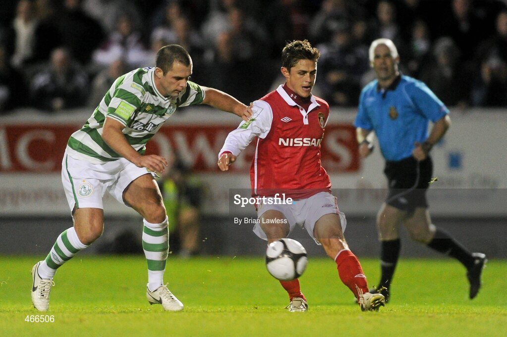 19 October 2010; Ryan Guy, St Patrick's Athletic, in action against Chris Turner, Shamrock Rovers. FAI Ford Cup Semi-Final Replay, St Patrick's Athletic v Shamrock Rovers, Richmond Park, Inchicore, Dublin. Picture credit: Brian Lawless / SPORTSFILE