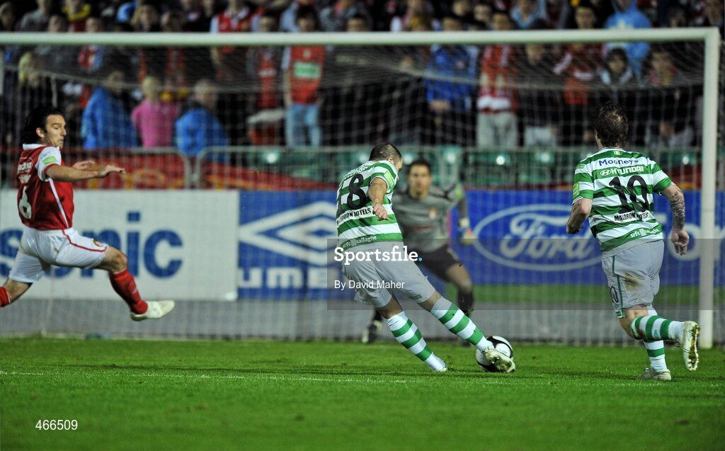 19 October 2010; Chris Turner, Shamrock Rovers, shoots to score his side's first goal. FAI Ford Cup Semi-Final Replay, St Patrick's Athletic v Shamrock Rovers, Richmond Park, Inchicore, Dublin. Picture credit: David Maher / SPORTSFILE