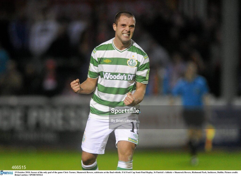 19 October 2010; Scorer of the only goal of the game Chris Turner, Shamrock Rovers, celebrates at the final whistle. FAI Ford Cup Semi-Final Replay, St Patrick's Athletic v Shamrock Rovers, Richmond Park, Inchicore, Dublin. Picture credit: Brian Lawless / SPORTSFILE