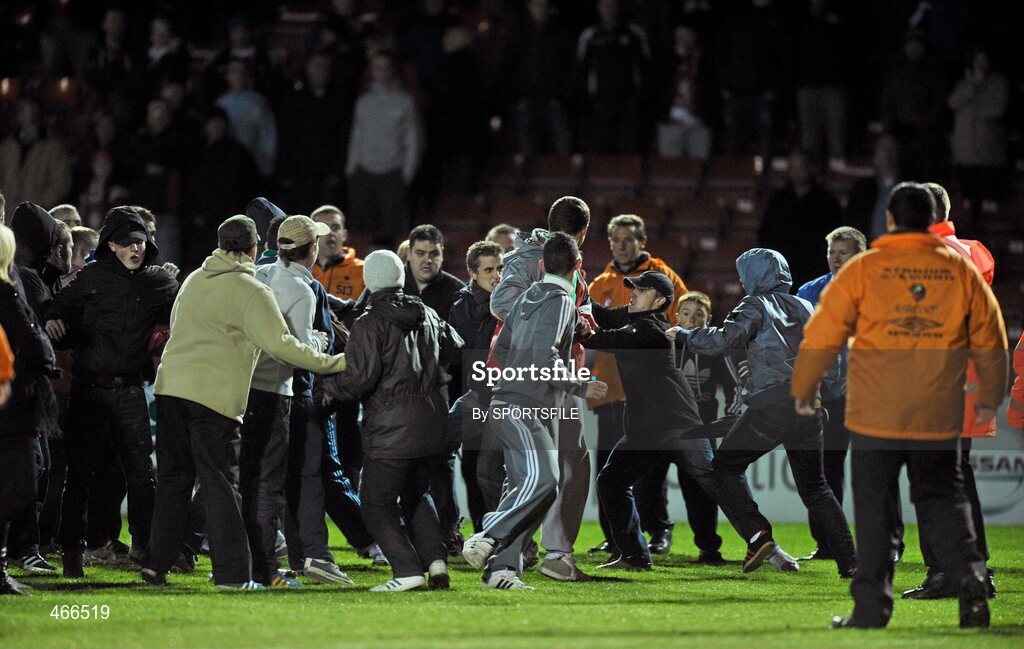 19 October 2010; Supporters clash with each other and security staff at the end of the game. FAI Ford Cup Semi-Final Replay, St Patrick's Athletic v Shamrock Rovers, Richmond Park, Inchicore, Dublin. Picture credit: SPORTSFILE