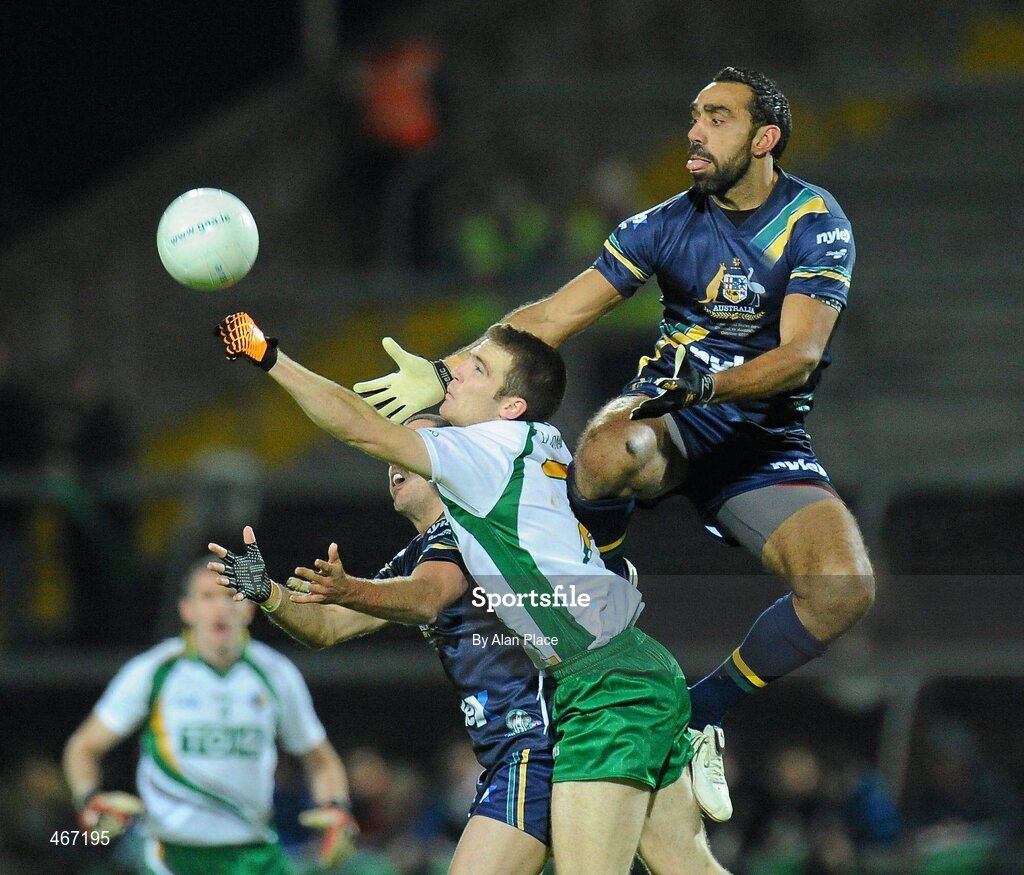 23 October 2010; Brendan Donaghy, Ireland, in action against Adam Goodes, Australia. Irish Daily Mail International Rules Series 1st Test, Ireland v Australia, Gaelic Grounds, Limerick. Picture credit: Alan Place / SPORTSFILE
