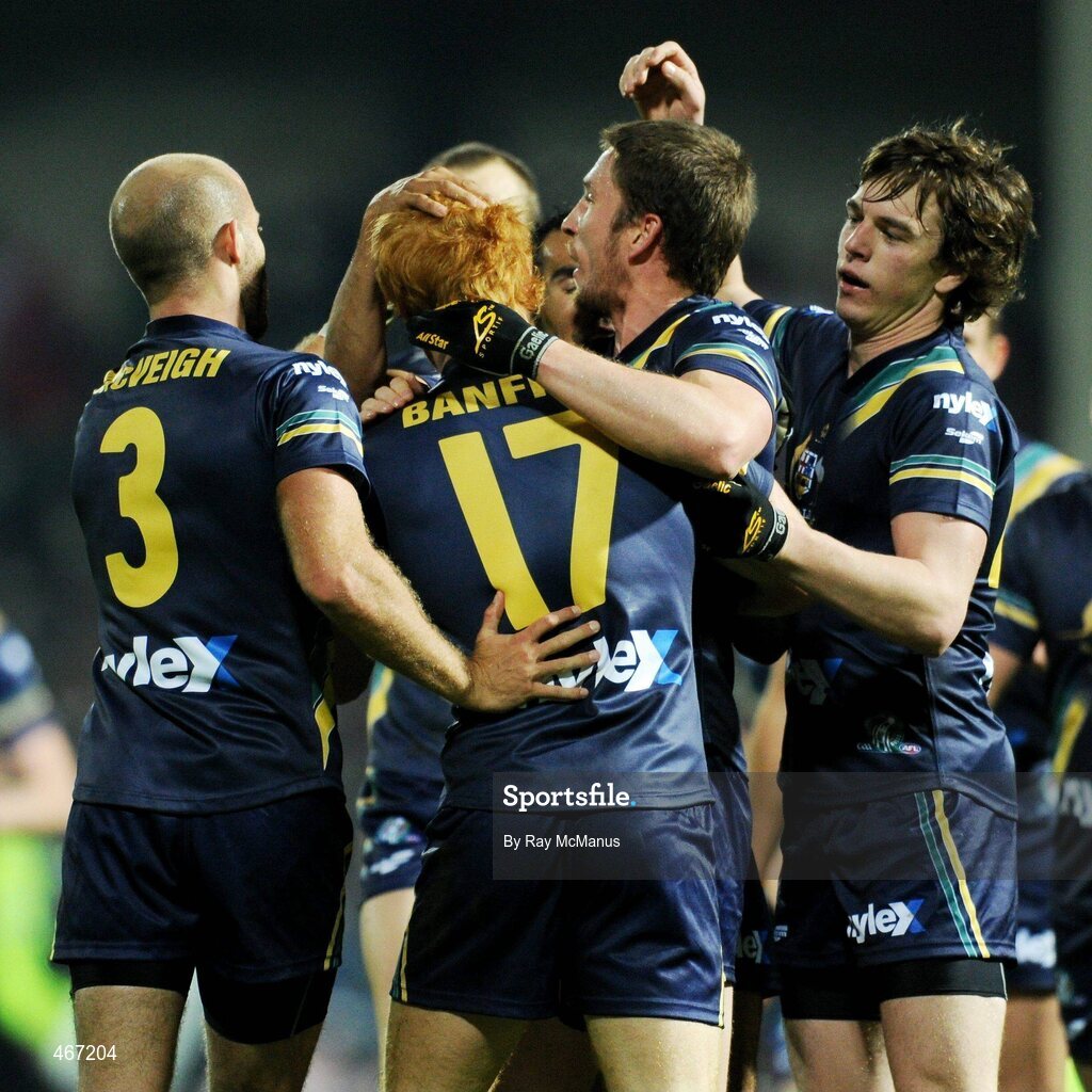23 October 2010; Australian players celebrate with Todd Banfield, 17, after he scored a three-pointer at the end of the second quarter. Irish Daily Mail International Rules Series 1st Test, Ireland v Australia, Gaelic Grounds, Limerick. Picture credit: Ray McManus / SPORTSFILE