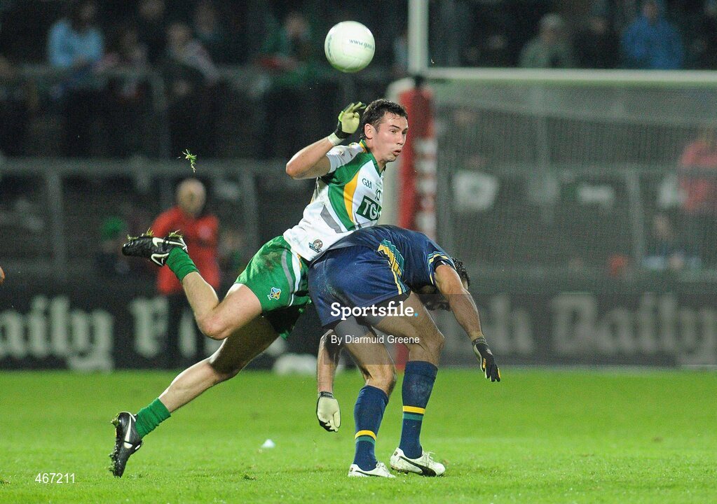 23 October 2010; Finian Hanley, Ireland, in action against Adam Goodes, Australia. Irish Daily Mail International Rules Series 1st Test, Ireland v Australia, Gaelic Grounds, Limerick. Picture credit: Diarmuid Greene / SPORTSFILE