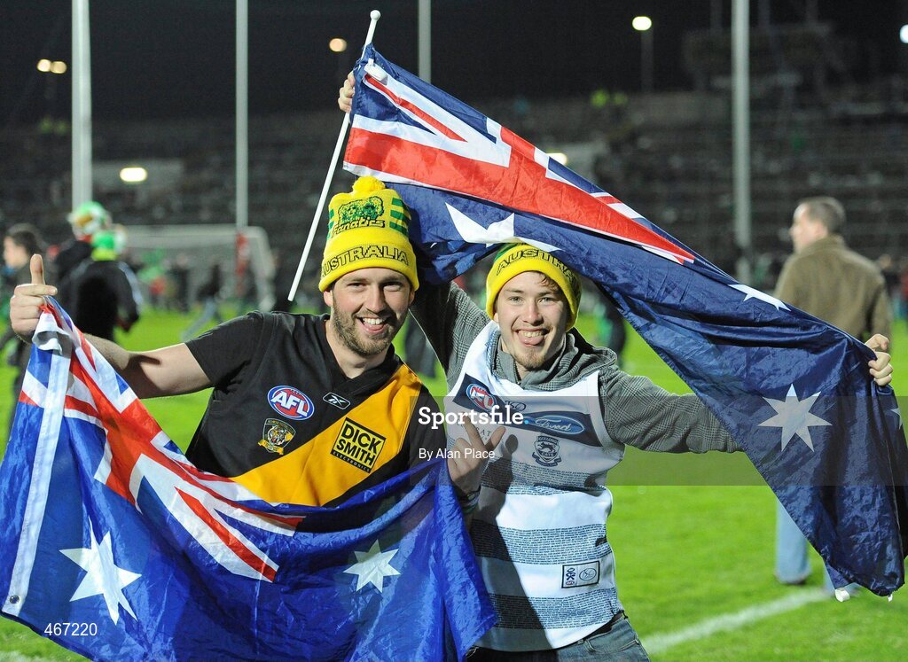 23 October 2010; Australia supporters Timmy Scannard, left, and Fraser Bourchier after the game. Irish Daily Mail International Rules Series 1st Test, Ireland v Australia, Gaelic Grounds, Limerick. Picture credit: Alan Place / SPORTSFILE