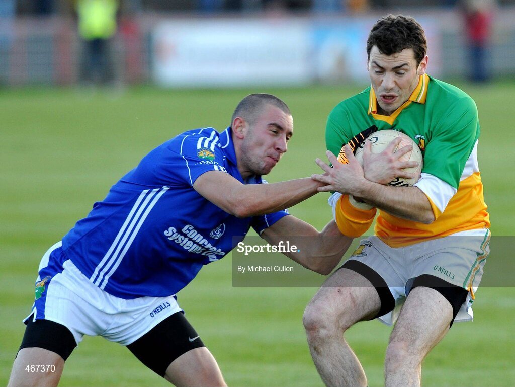 24 September 2010; Peter McGahan, Coalisland Fianna, in action against Colm McGurk, Carrickmore St Colmcille's. Tyrone County Senior Football Championship Final, Coalisland Fianna v Carrickmore St Colmcille's, Healy Park, Omagh, Co. Tyrone. Picture credit: Michael Cullen / SPORTSFILE