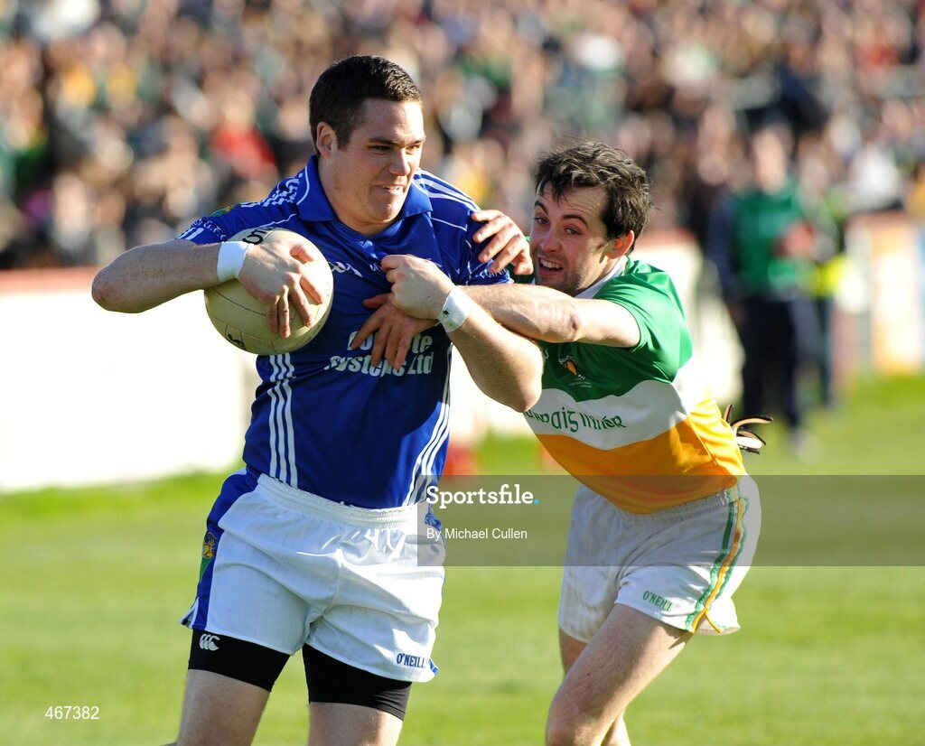 24 September 2010; Gerard Toner, Coalisland Fianna, in action against Pearse Cunningham, Carrickmore St Colmcille's. Tyrone County Senior Football Championship Final, Coalisland Fianna v Carrickmore St Colmcille's, Healy Park, Omagh, Co. Tyrone. Picture credit: Michael Cullen / SPORTSFILE
