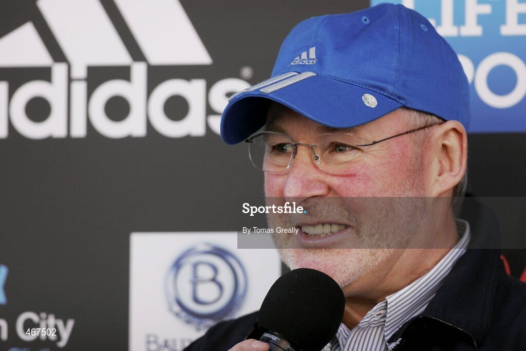 25 October 2010; Race commentator Dave Dempsey during the Lifestyle Sports - adidas Dublin Marathon 2010, Merrion Square, Dublin. Picture credit: Tomas Greally / SPORTSFILE