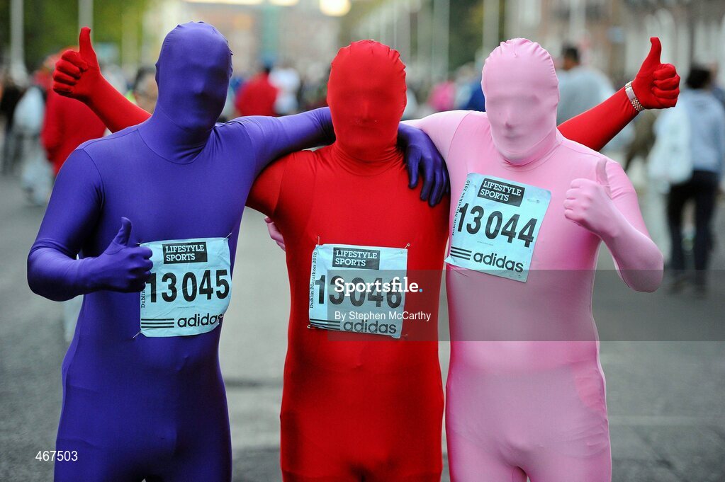 25 October 2010; Lyndon, Lance and Larry Norley, from England, ahead of the Lifestyle Sports - adidas Dublin Marathon 2010. Dublin. Picture credit: Stephen McCarthy / SPORTSFILE