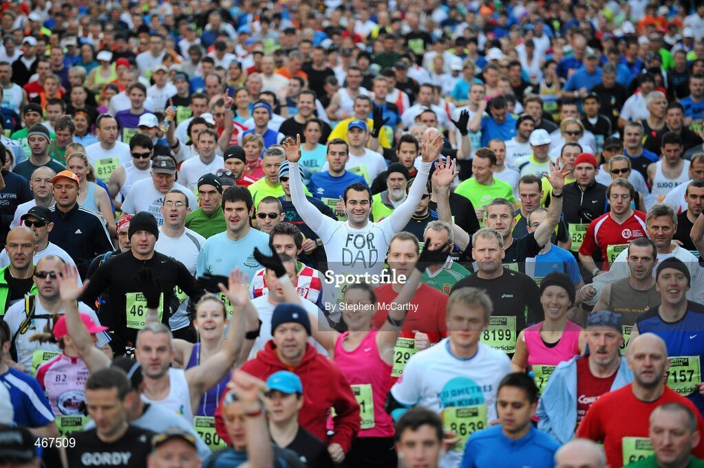 25 October 2010; Athletes, including Cillian Ryan, from Naas, Co. Kildare, running for his dad, during the Lifestyle Sports - adidas Dublin Marathon 2010. Dublin. Picture credit: Stephen McCarthy / SPORTSFILE