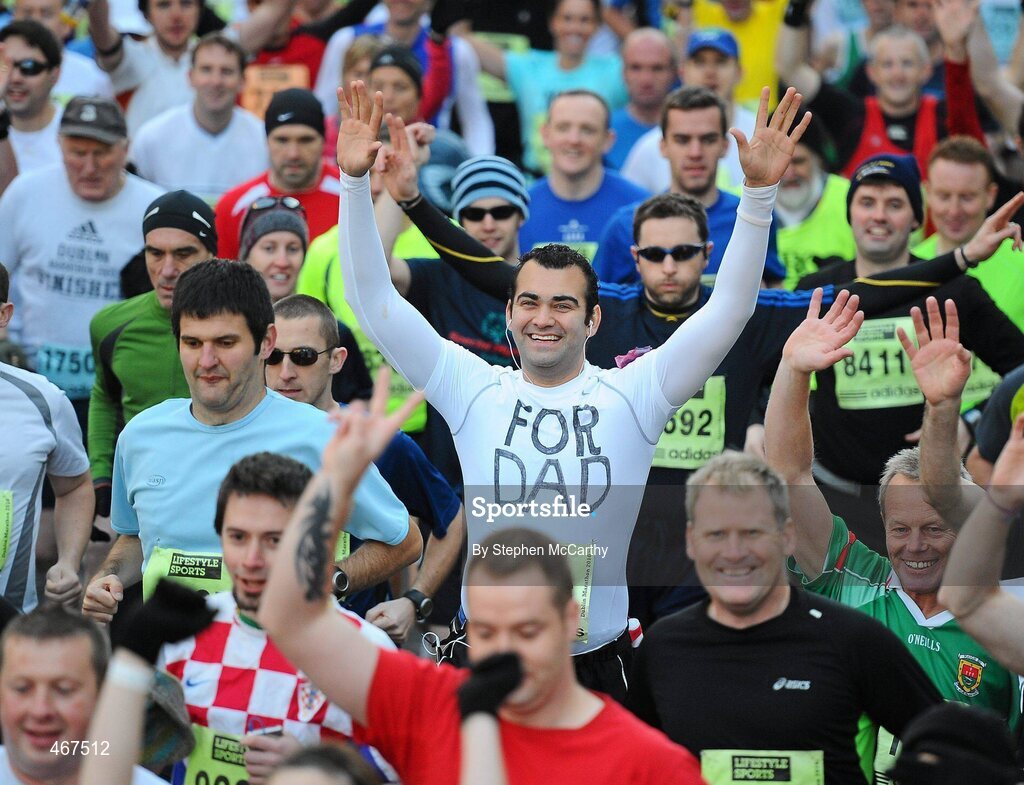 25 October 2010; Athletes, including Cillian Ryan, from Naas, Co. Kildare, running for his dad, during the Lifestyle Sports - adidas Dublin Marathon 2010. Dublin. Picture credit: Stephen McCarthy / SPORTSFILE