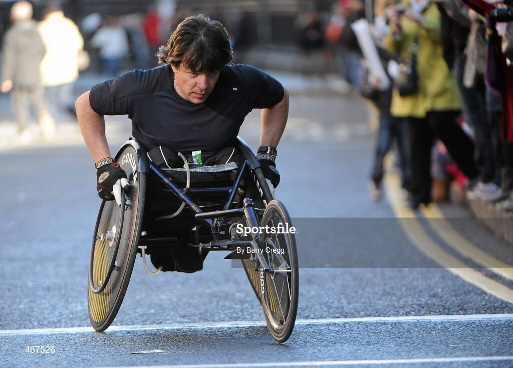 25 October 2010; Paul Hannan, Great Britain, on his way to winning the wheelchair race during the Lifestyle Sports - adidas Dublin Marathon 2010, Merrion Square, Dublin. Picture credit: Barry Cregg / SPORTSFILE
