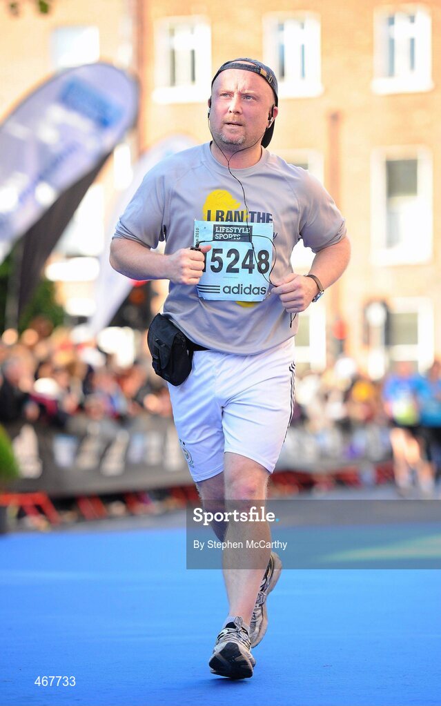 25 October 2010; Joseph Killen, from Kilkeel, Co. Down, on the approach to the finish during the Lifestyle Sports - adidas Dublin Marathon 2010. Dublin. Picture credit: Stephen McCarthy / SPORTSFILE