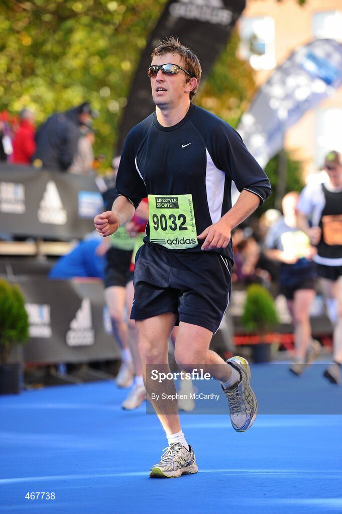 25 October 2010; Paul Browne, from Gort, Co. Galway, on the approach to the finish during the Lifestyle Sports - adidas Dublin Marathon 2010. Dublin. Picture credit: Stephen McCarthy / SPORTSFILE