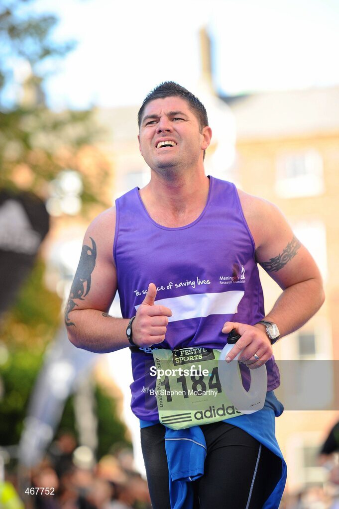 25 October 2010; Leonard Ryan on the approach to the finish during the Lifestyle Sports - adidas Dublin Marathon 2010. Dublin. Picture credit: Stephen McCarthy / SPORTSFILE