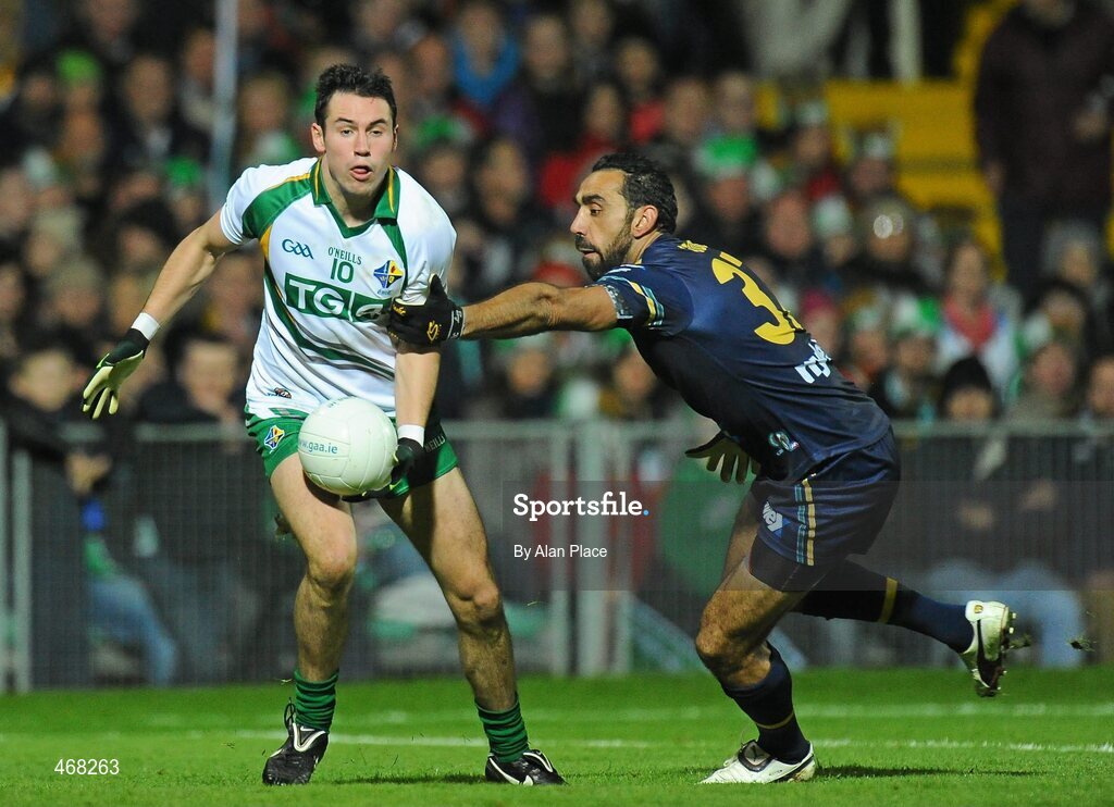 23 October 2010; Finian Hanley, Ireland, in action against Adam Goodes, Australia. Irish Daily Mail International Rules Series 1st Test, Ireland v Australia, Gaelic Grounds, Limerick. Picture credit: Alan Place / SPORTSFILE