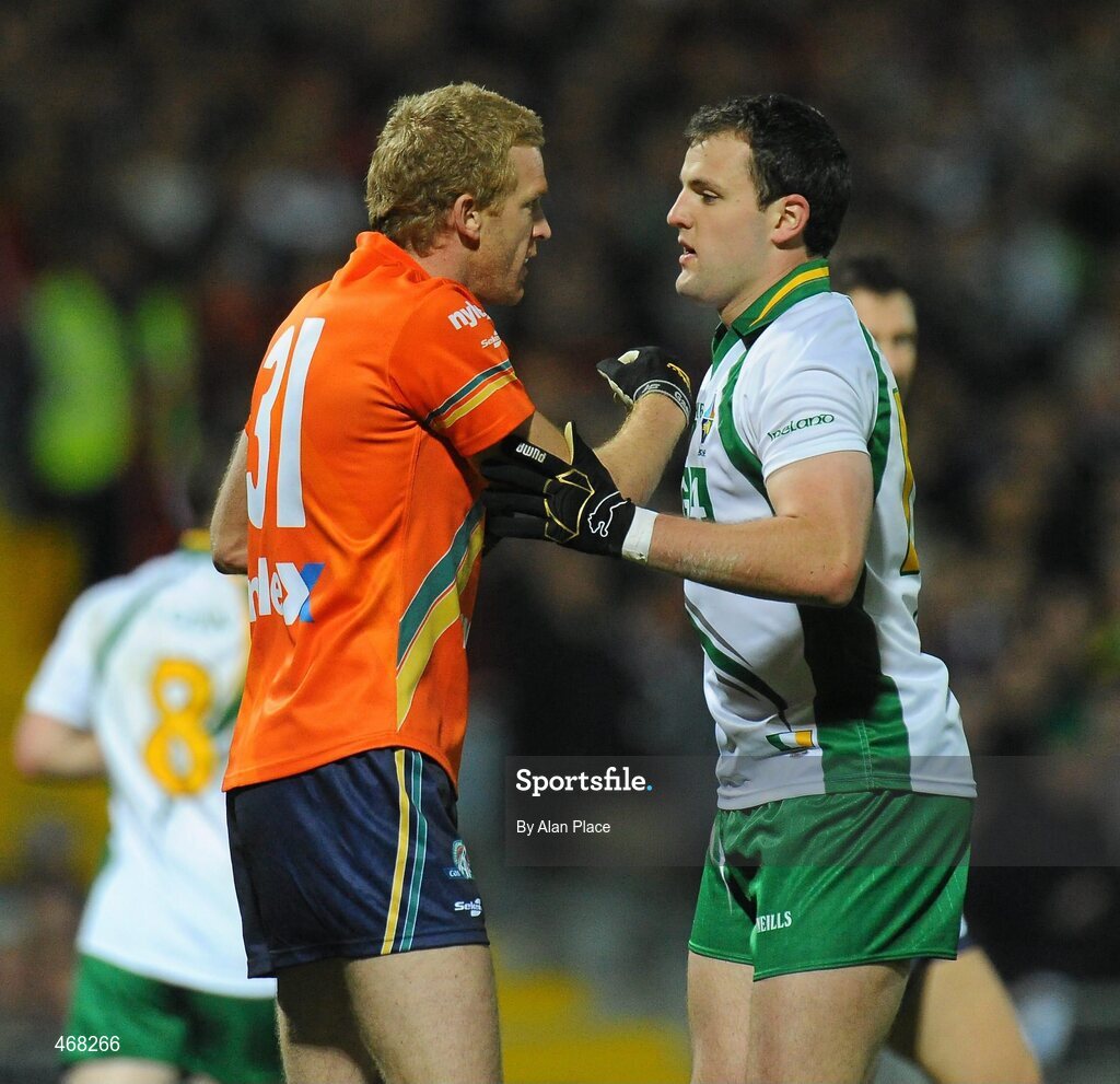 23 October 2010; Michael Murphy, Ireland, tussles with Dustin Fletcher, Australia. Irish Daily Mail International Rules Series 1st Test, Ireland v Australia, Gaelic Grounds, Limerick. Picture credit: Alan Place / SPORTSFILE