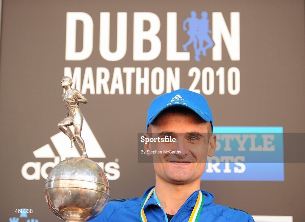 25 October 2010; Sergie Ciobanu, Clonliffe Harriers,after winning the Irish National Marathon Championships at the Lifestyle Sports - adidas Dublin Marathon 2010. Dublin. Picture credit: Stephen McCarthy / SPORTSFILE