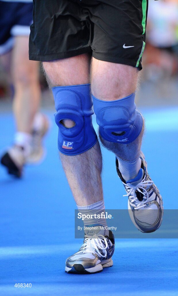 25 October 2010; A competitor with knee supports during during the Lifestyle Sports - adidas Dublin Marathon 2010. Dublin. Picture credit: Stephen McCarthy / SPORTSFILE