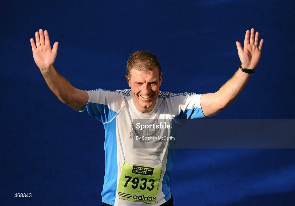 25 October 2010; Earl Cruthirds, from Suwanee, USA, on the approach to the finish of the Lifestyle Sports - adidas Dublin Marathon 2010. Dublin. Picture credit: Stephen McCarthy / SPORTSFILE