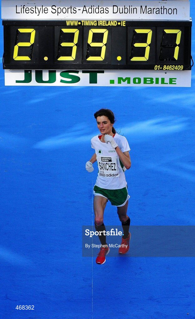 25 October 2010; Barbara Sanchez, Raheny Shamrock A.C., on her way to winning the Irish Women's Marathon National Championships during the Lifestyle Sports - adidas Dublin Marathon 2010. Dublin. Picture credit: Stephen McCarthy / SPORTSFILE