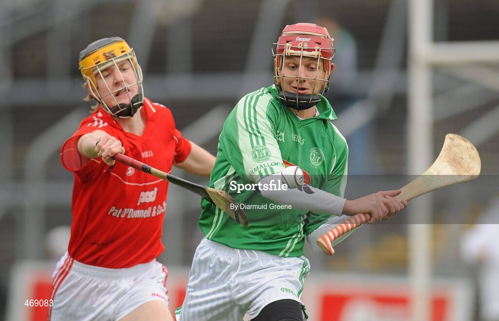 31 October 2010; Kevin O'Mahony, Kilmallock, in action against Conor O'Donnell, Crusheen. AIB GAA Hurling Munster Club Senior Championship Quarter-Final, Crusheen v Kilmallock, Cusack Park, Ennis, Co. Clare. Picture credit: Diarmuid Greene / SPORTSFILE