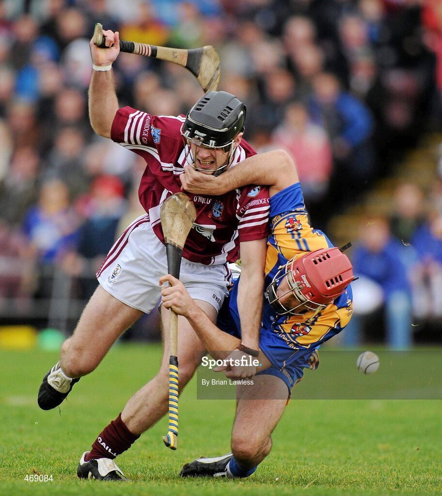 31 October 2010; Eoin Forde, Clarinbridge, in action against Brian Mahony, Loughrea. Galway County Senior Hurling Championship Final, Clarinbridge v Loughrea, Pearse Stadium, Galway. Picture credit: Brian Lawless / SPORTSFILE