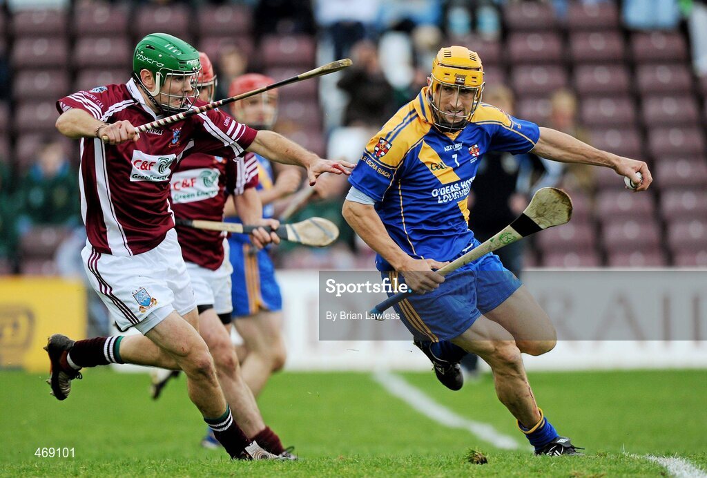 31 October 2010; Vinnie Maher, Loughrea, in action against Stephen Forde, Clarinbridge. Galway County Senior Hurling Championship Final, Clarinbridge v Loughrea, Pearse Stadium, Galway. Picture credit: Brian Lawless / SPORTSFILE