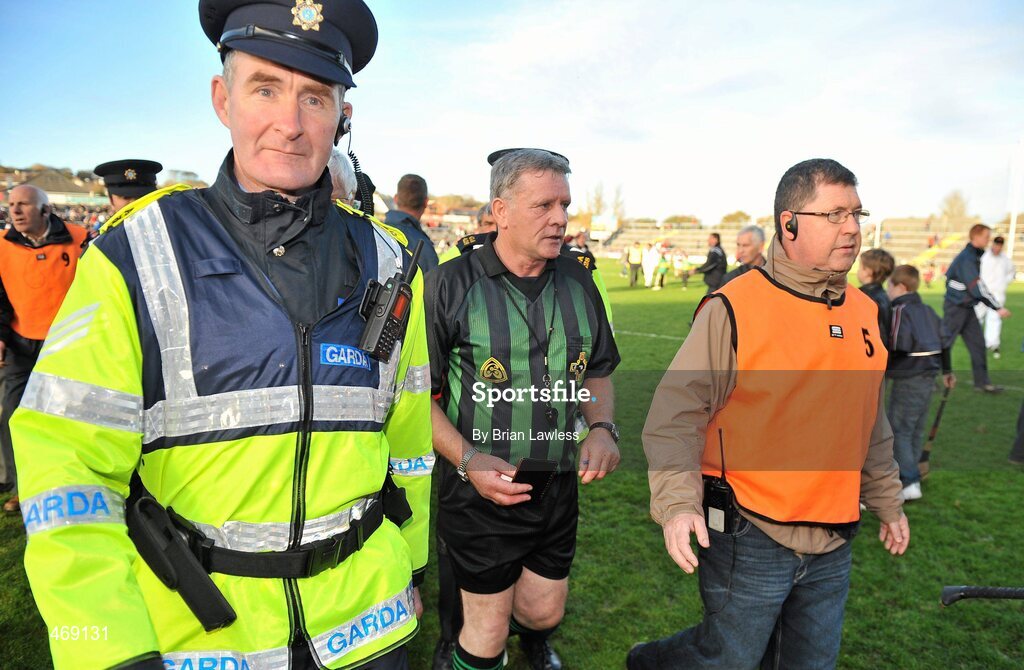 31 October 2010; Referee Michael Dolan makes his way off the pitch after the match ended in a draw. Galway County Senior Hurling Championship Final, Clarinbridge v Loughrea, Pearse Stadium, Galway. Picture credit: Brian Lawless / SPORTSFILE