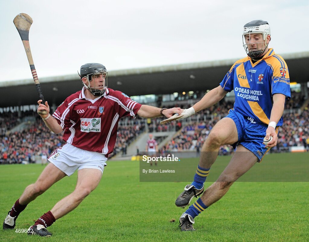 31 October 2010; Damien McClearn, Loughrea, in action against Eoin Forde, Clarinbridge. Galway County Senior Hurling Championship Final, Clarinbridge v Loughrea, Pearse Stadium, Galway. Picture credit: Brian Lawless / SPORTSFILE