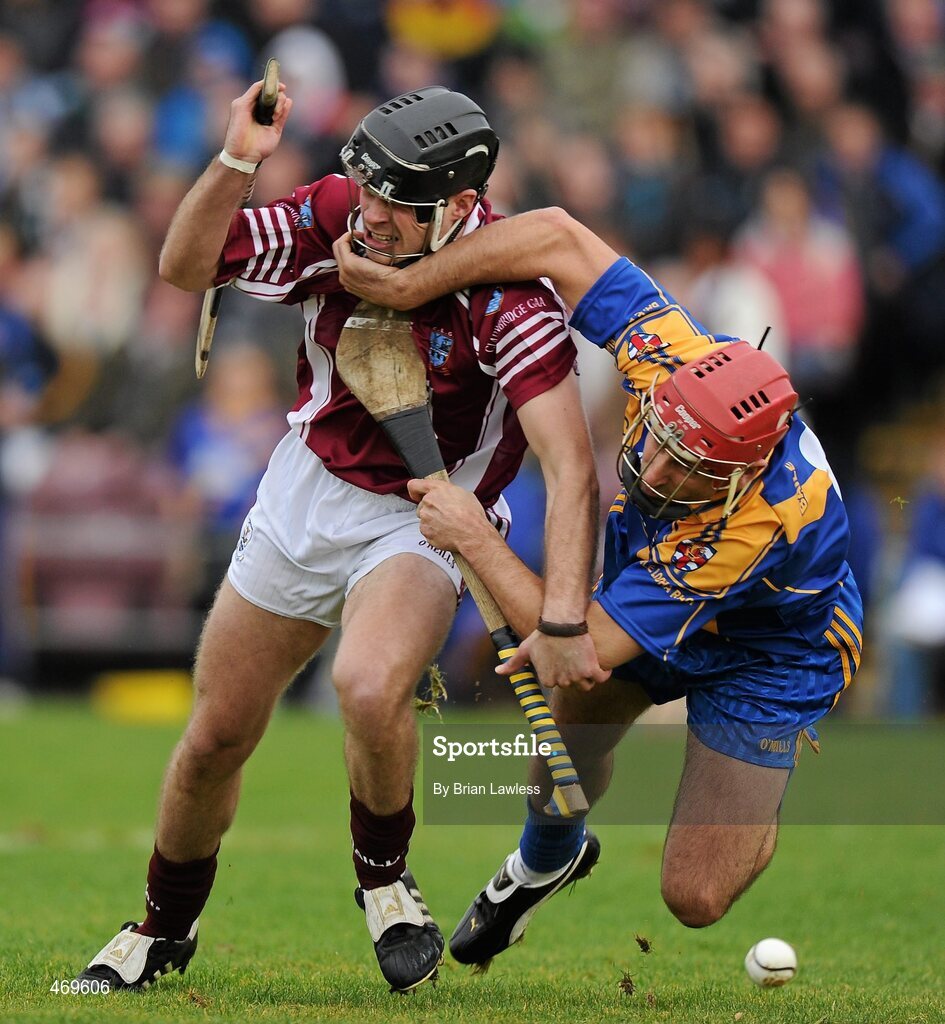 31 October 2010; Eoin Forde, Clarinbridge, in action against Brian Mahony, Loughrea. Galway County Senior Hurling Championship Final, Clarinbridge v Loughrea, Pearse Stadium, Galway. Picture credit: Brian Lawless / SPORTSFILE