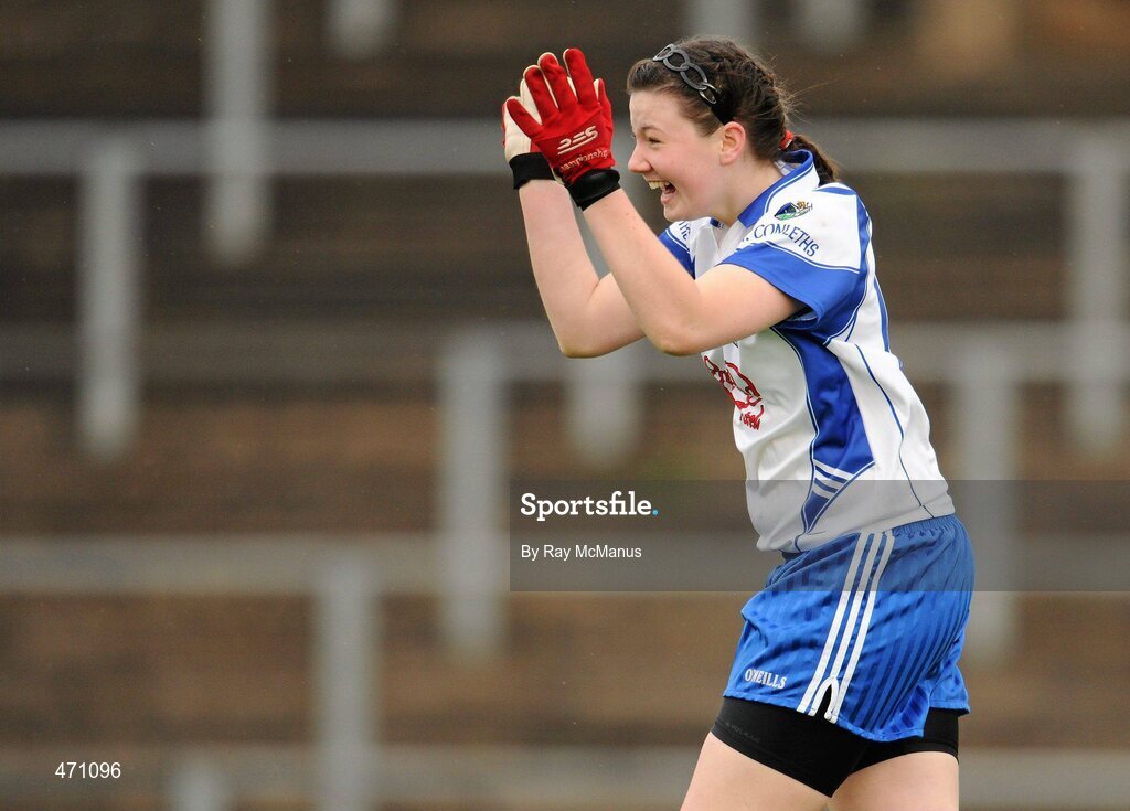 6 November 2010; Laura Dunne celebrates the first goal of the game for St Conleth’s, Laois. Tesco All-Ireland Intermediate Ladies Football Club Championship Semi-Final, St Gall’s, Antrim v St Conleth’s, Laois, Casement Park, Belfast, Co. Antrim. Picture credit: Ray McManus / SPORTSFILE