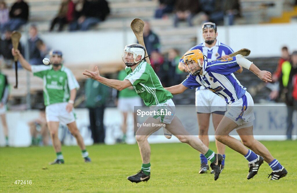 14 November 2010; Brian Kelly, O'Loughlin Gaels, in action against David Curtin, Ballyboden St Enda's. AIB GAA Hurling Leinster Club Senior Championship Semi-Final, O'Loughlin Gaels v Ballyboden St Enda's, Nowlan Park, Kilkenny. Picture credit: Matt Browne / SPORTSFILE