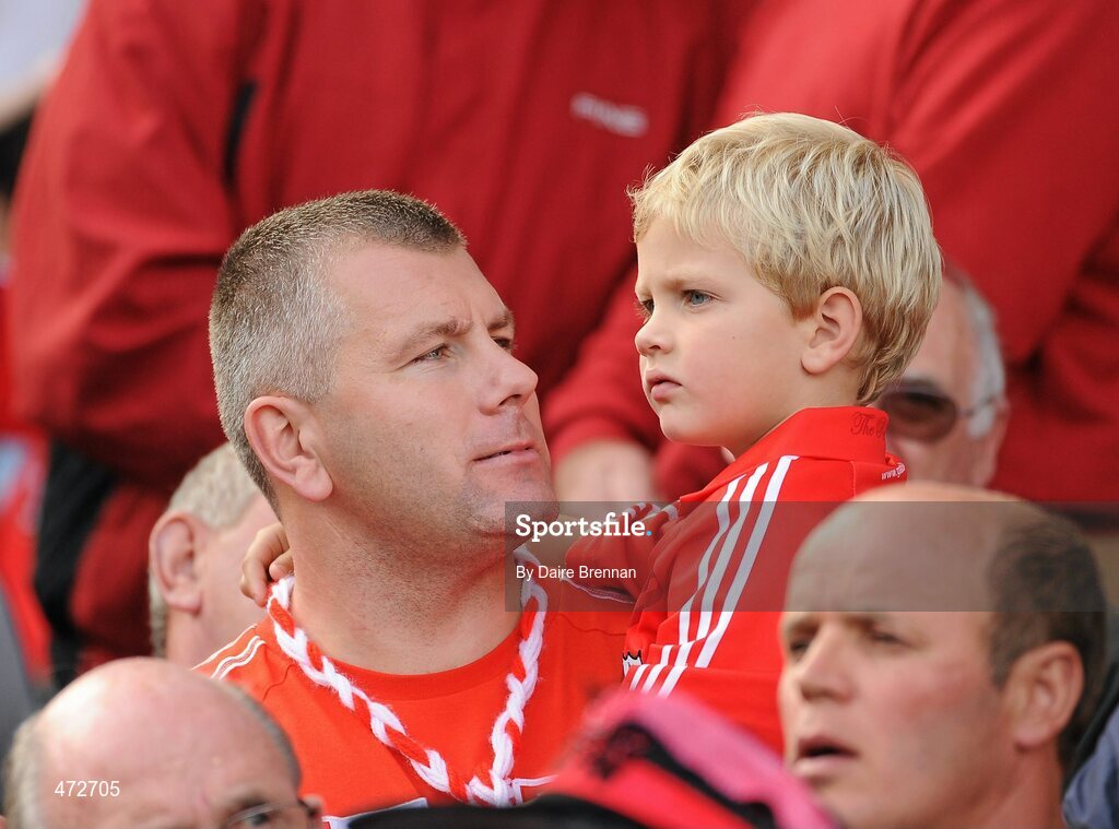 19 September 2010; Former Cork hurler Diarmuid O'Sullivan and his son Cian at the GAA Football All-Ireland Championship Finals, Croke Park, Dublin. Picture credit: Dáire Brennan / SPORTSFILE