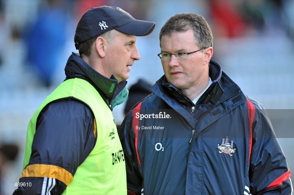 13 February 2011; Cork manager Denis Walsh, right, with Offaly manager Joe Dooley. Allianz Hurling League, Division 1, Round 1, Cork v Offaly, Pairc Uí Chaoimh, Cork. Picture credit: David Maher / SPORTSFILE
