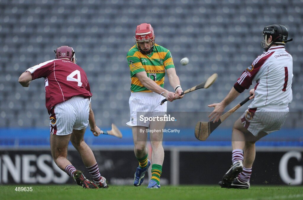 13 February 2011; Dan Dwyer, Ballymartle, in action against Philly Hogan, left, and Sam Morrissey, Dicksboro. GAA Hurling All-Ireland Intermediate Club Final, Ballymartle, Cork, v Dicksboro, Kilkenny. Croke Park, Dublin. Picture credit: Stephen McCarthy / SPORTSFILE