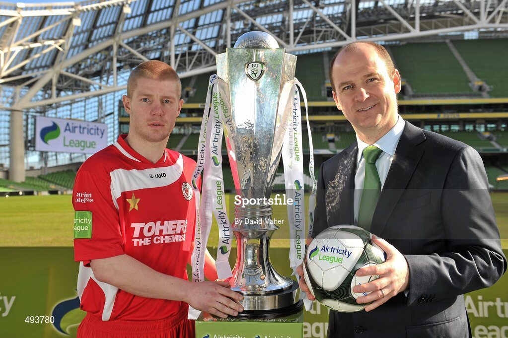 28 February 2011; At the launch of the 2011 Airtricity League are Stephen Wheeler, right, Managing Director Airtricity, with Richie Ryan of Sligo Rovers. Airtricity League Launch Photocall, Aviva Stadium, Lansdowne Road, Dublin. Picture credit: David Maher / SPORTSFILE