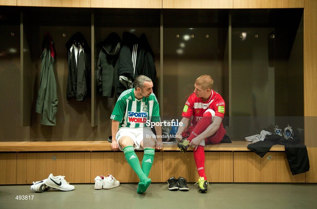 28 February 2011; At the launch of the 2011 Airtricity League are Gary Dempsey, left, of Bray Wanderers with Richie Ryan, Sligo Rovers. Airtricity League Launch Photocall, Aviva Stadium, Lansdowne Road, Dublin. Picture credit: Brendan Moran / SPORTSFILE