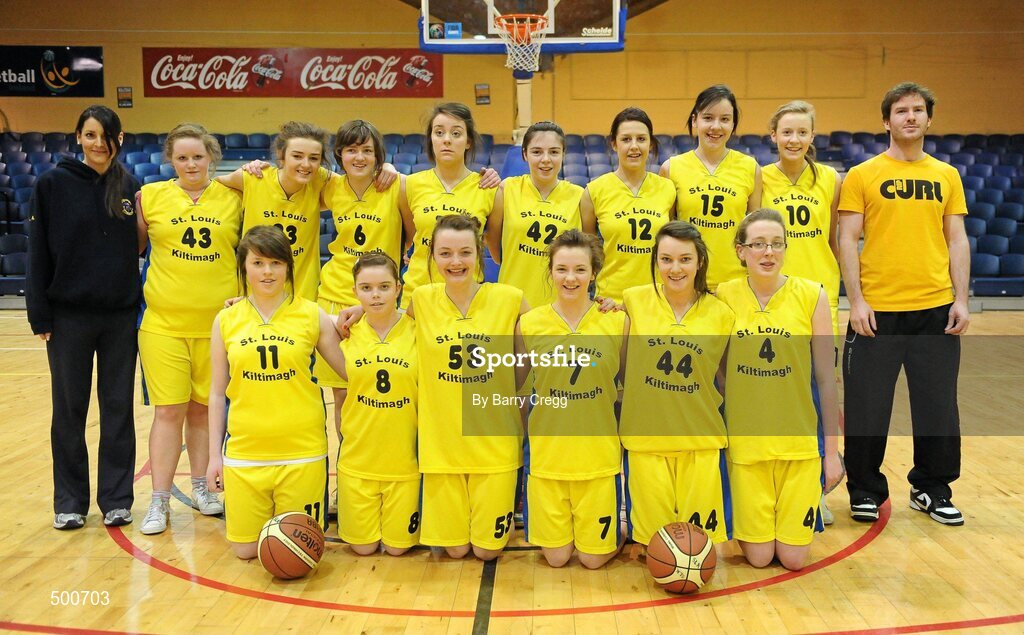 24 March 2011; The St. Louis Community School, Kiltimagh, Co. Mayo team. Basketball Ireland Girls U16C Schools League Final, Colaiste Chiarain, Leixlip, Co. Kildare v St. Louis Community School, Kiltimagh, Co. Mayo, National Basketball Arena, Tallaght, Co. Dublin. Picture credit: Barry Cregg / SPORTSFILE
