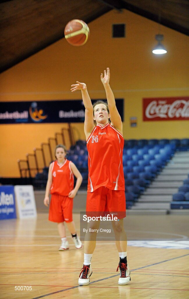 24 March 2011; Erin Bracken, Colaiste Chiarain, Leixlip, Co. Kildare, takes a free throw. Basketball Ireland Girls U16C Schools League Final, Colaiste Chiarain, Leixlip, Co. Kildare v St. Louis Community School, Kiltimagh, Co. Mayo, National Basketball Arena, Tallaght, Co. Dublin. Picture credit: Barry Cregg / SPORTSFILE