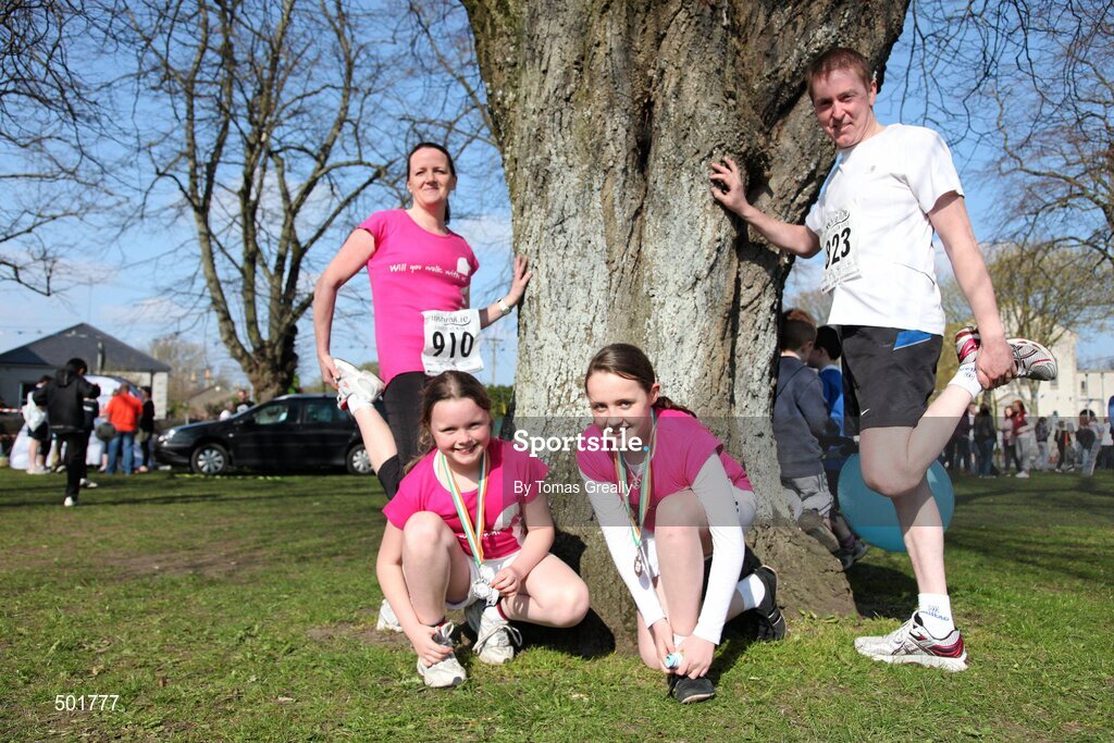 27 March 2011; The Carolan Family from Kells, Co. Meath, from left, mother Nuala, daughters Eve, age nine, and Keri, age 11 and father David after competing in the Irishrail.ie Dunboyne 4 Mile Road Race & Fun Run, Dunboyne, Co. Meath. Picture credit: Tomas Greally / SPORTSFILE