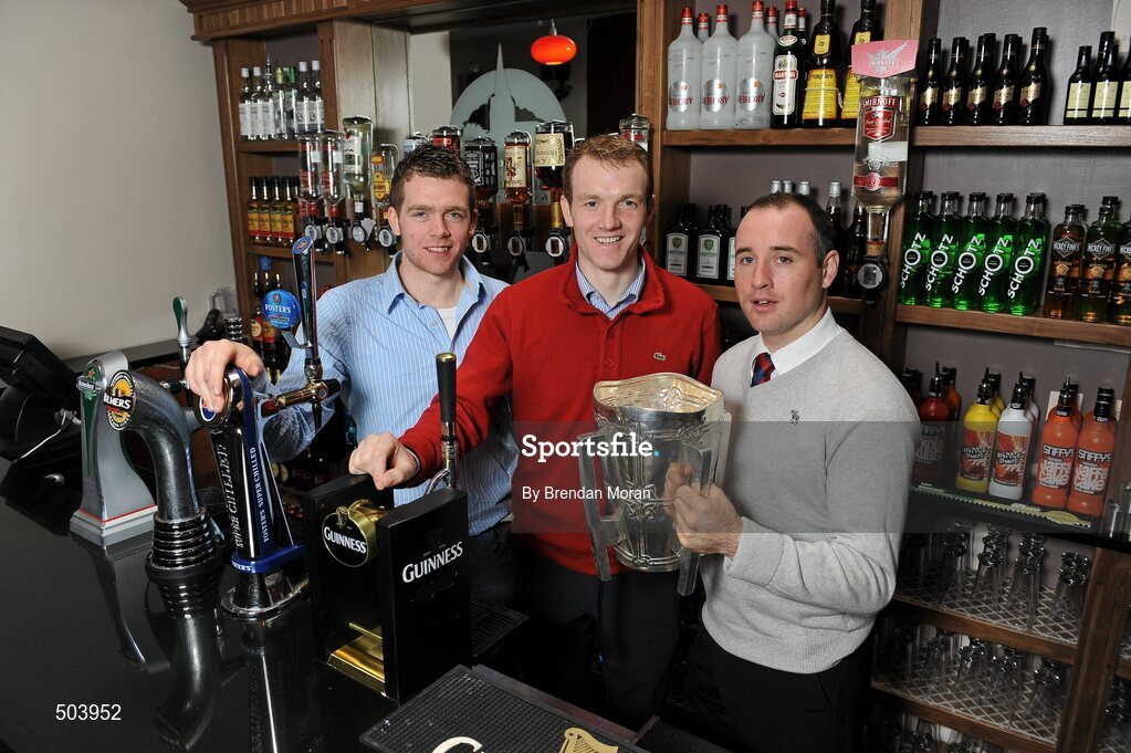5 April 2011; Tipperary senior hurler Lar Corbett launched his new business at Coppinger's Bar, in Thurles, Co. Tipperary. Lar Corbett's Bar@ Coppinger's Bar will be officially opened by former Tipperary senior hurling team manager Liam Sheedy on Saturday 16th April at 8pm. At the launch of the bar are Tipperary hurlers, from left, Padraic Maher, Lar Corbett and Eoin Kelly. Thurles, Co. Tipperary. Picture credit: Brendan Moran / SPORTSFILE