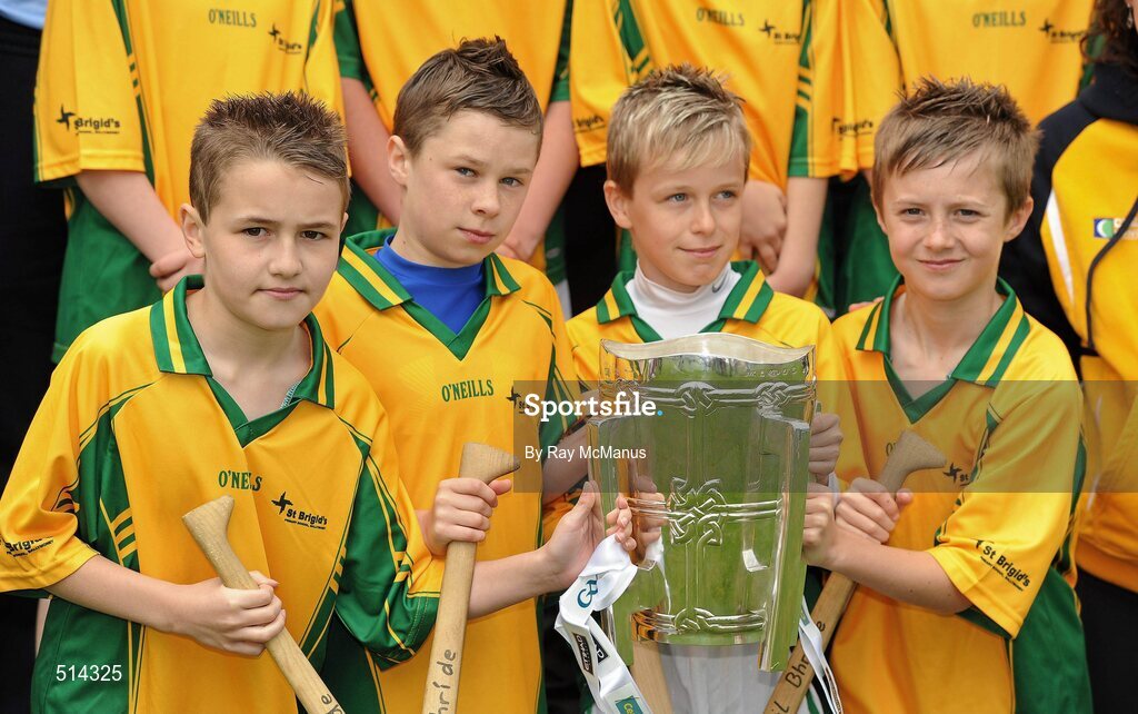 11 May 2011; At the launch of the 2011 GAA Hurling All-Ireland Senior Championship in Dunloy Cuchullains, Co. Antrim, are Odhrán Doherty, Kai Smyth, Mark Kelly and Conleth, St Bridgets, Ballymoney. Launch of 2011 GAA Hurling All-Ireland Senior Championship, Dunloy, Co. Antrim. Picture credit: Ray McManus / SPORTSFILE