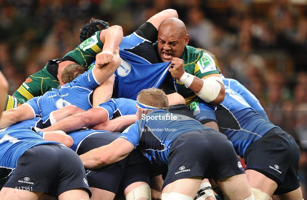 21 May 2011; Soane Tonga'uiha, Northampton Saints, comes up against a Leinster scrum. Heineken Cup Final, Leinster v Northampton Saints, Millennium Stadium, Cardiff, Wales. Picture credit: Brendan Moran / SPORTSFILE