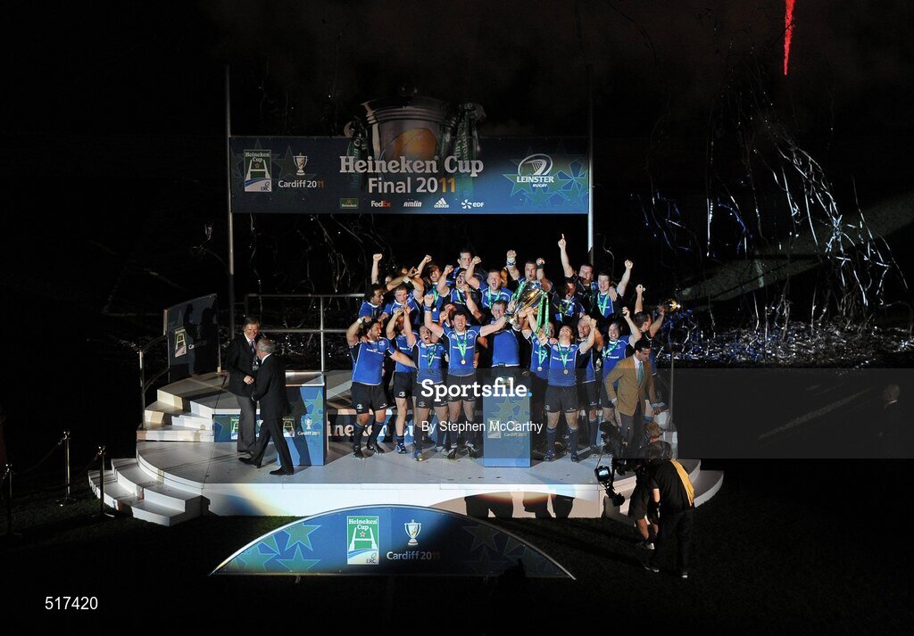 21 May 2011; Leinster captain Leo Cullen and team-mates celebrate with the cup. Heineken Cup Final, Leinster v Northampton Saints, Millennium Stadium, Cardiff, Wales. Picture credit: Stephen McCarthy / SPORTSFILE