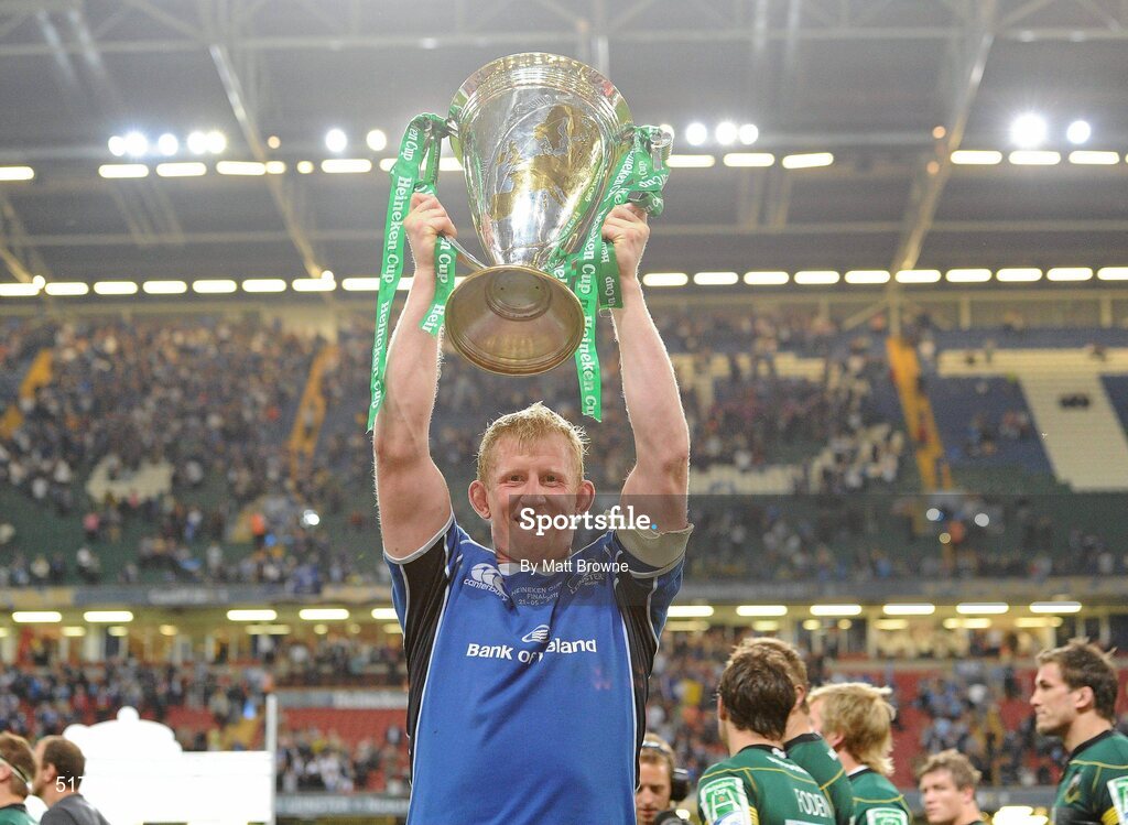 21 May 2011; Leinster captain Leo Cullen celebrates after the game with the Heineken Cup. Heineken Cup Final, Leinster v Northampton Saints, Millennium Stadium, Cardiff, Wales. Picture credit: Matt Browne / SPORTSFILE