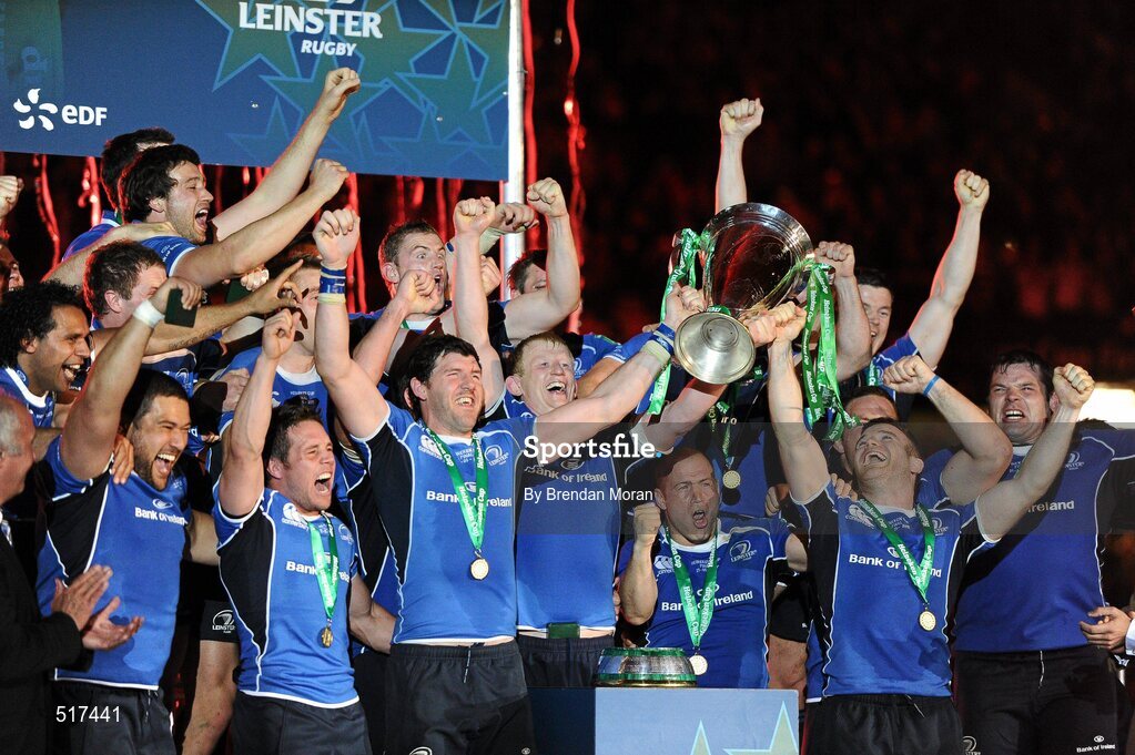 21 May 2011; Leinster's Shane Horgan, Leo Cullen and Gordon D'Arcy lift the Heineken Cup. Heineken Cup Final, Leinster v Northampton Saints, Millennium Stadium, Cardiff, Wales. Picture credit: Brendan Moran/ SPORTSFILE