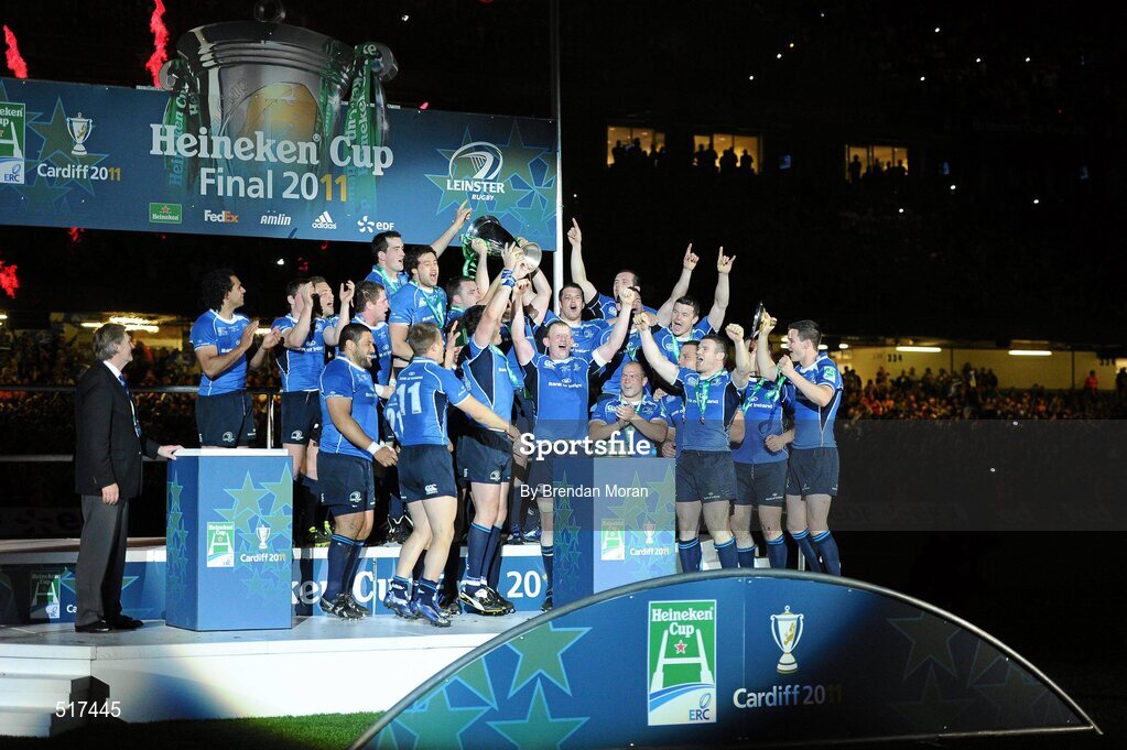 21 May 2011; Leinster's players celebrate with the Heineken Cup. Heineken Cup Final, Leinster v Northampton Saints, Millennium Stadium, Cardiff, Wales. Picture credit: Brendan Moran/ SPORTSFILE