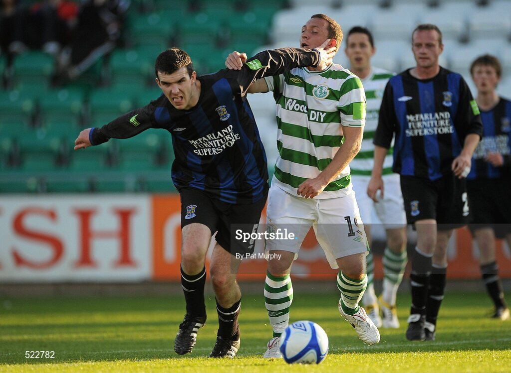 3 June 2011; Paul Danaher, Athlone Town, in action against Gary O'Neill, Shamrock Rovers. FAI Ford Senior Challenge Cup 2011, Third Round, Shamrock Rovers v Athlone Town, Tallaght Stadium, Tallaght, Co. Dublin. Picture credit: Pat Murphy / SPORTSFILE